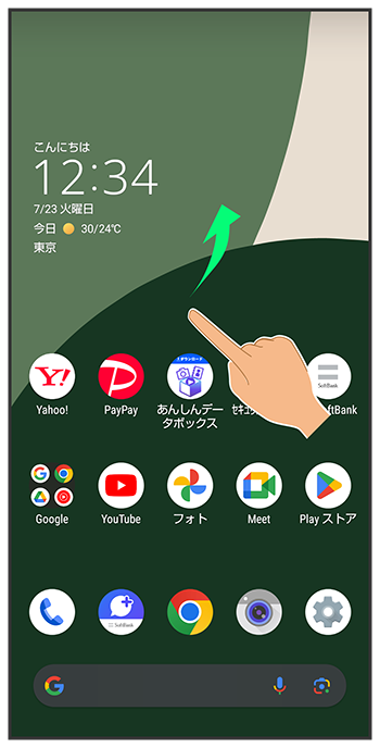 ホーム画面を上にフリック