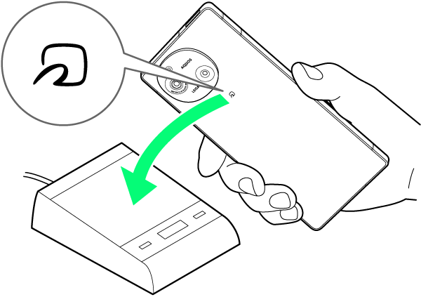 本機をゆっくりかざしてください。リーダー/ライターにかざす時間が短いと、うまく読み取れないことがあります。