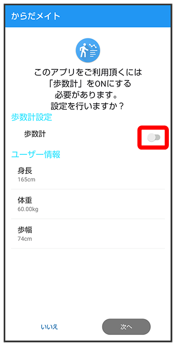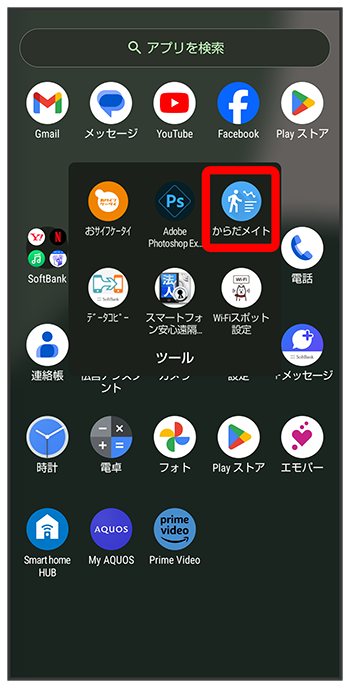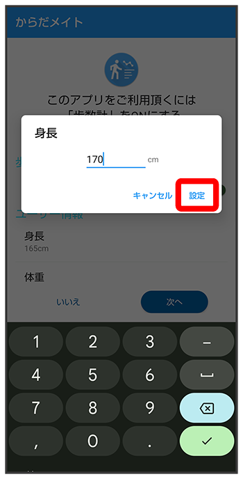 からだメイト画面で- 確認画面が表示されたときは、画面に従って操作してください。