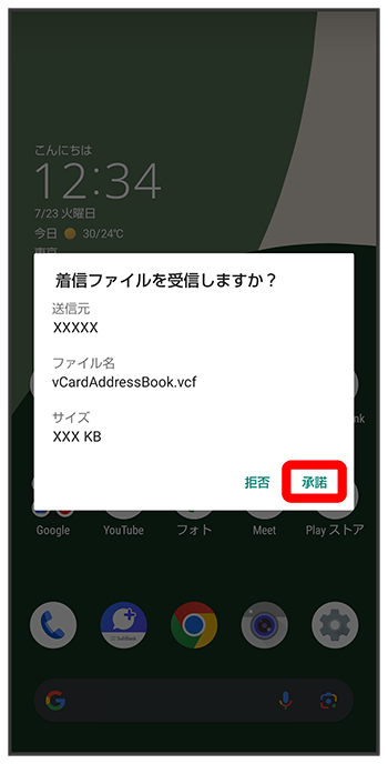 相手からデータの受信要求があると、ロック画面に通知が表示されます。次の操作を行うと、受信することができます。