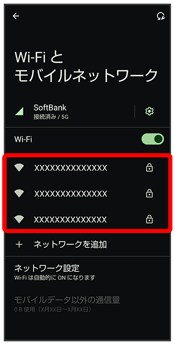 Wi-Fiとモバイルネットワーク画面が表示されます。