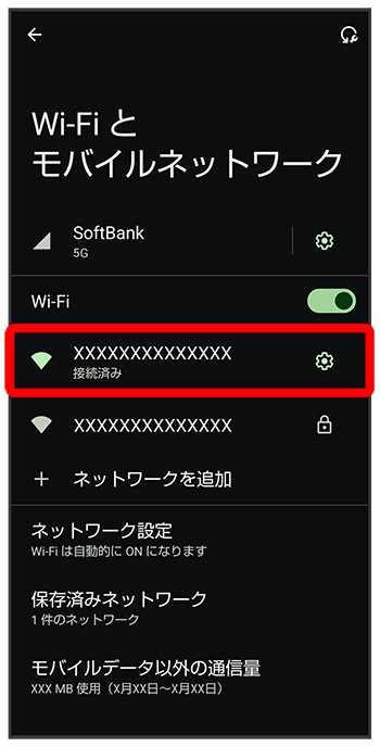 Wi-Fiとモバイルネットワーク画面が表示されます。