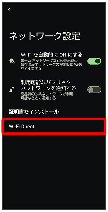 「ピアデバイス」欄に、近くにあるWi-Fi Direct規格対応機器が表示されます。