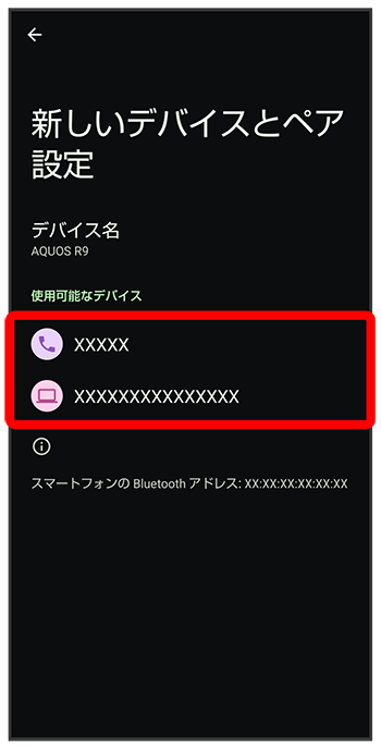 「使用可能なデバイス」欄に近くにあるBluetooth®機器が表示されます。