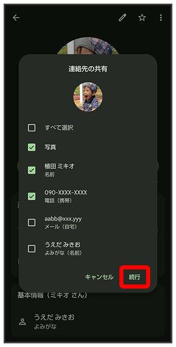 送信する連絡先をタップ