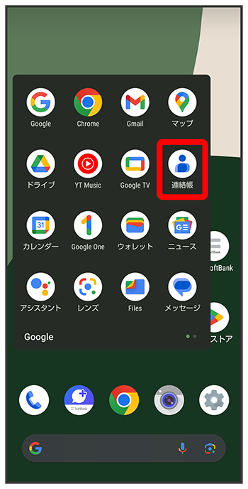 連絡帳画面で連絡先をロングタッチ送信したい連絡先をタップ(