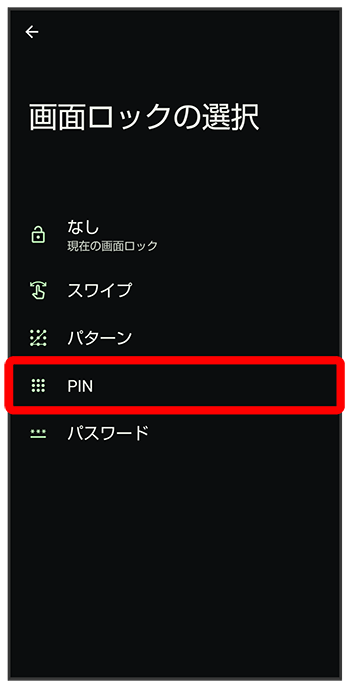 ロックNo.(PIN)で画面ロックを解除するように設定する