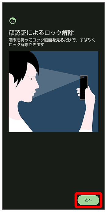 顔データを登録すると、画面点灯時に自動的に顔認証され、ロックが解除されます。