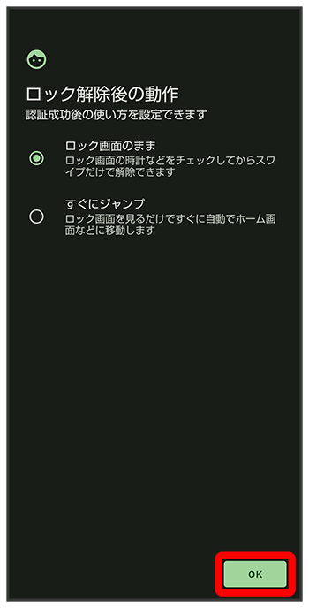 セキュリティとプライバシー画面でパターン/ロックNo.(PIN)/パスワードを入力マスクをしたままでも顔認証をするかどうかを設定する
