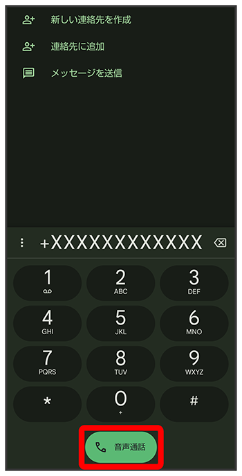 国番号のあとに相手の電話番号(先頭の「0」を除く)を入力