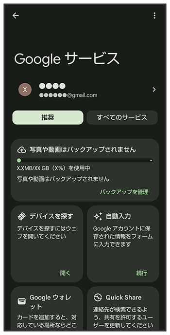 /タブが追加され、項目が一部変更されます。には、Googleの各種サービスの、おすすめの設定などが表示されます。