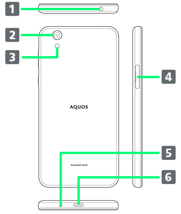 | 送話口/マイク | 自分の声を通話相手に伝えます。動画撮影時はマイクとして利用します。 利用時は送話口/マイクをふさがないようご注意ください。 |