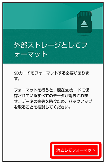 SDカード内のデータがすべて消去されます。