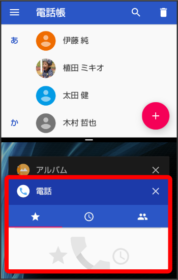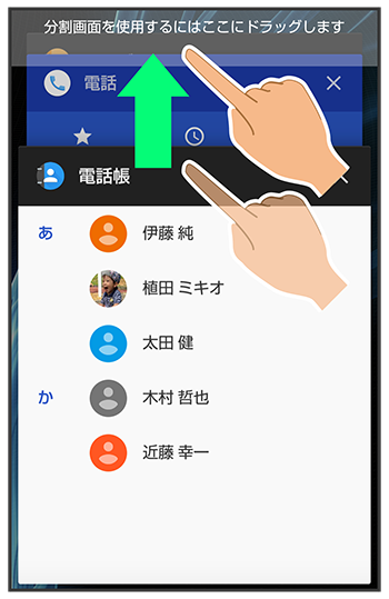 マルチウインドウ画面が表示され、ドラッグしたアプリが画面上部に表示されます。