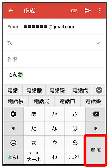 をタップしたあと、次の文字を入力します。入力した文字の背景色が消えたあとは、そのまま次の文字が入力できます。 - キーをくり返しタップせず、キーをロングタッチしたときに表示されるキー入力ガイドを利用して文字を入力することもできます。詳しくは「フリック入力について」を参照してください。