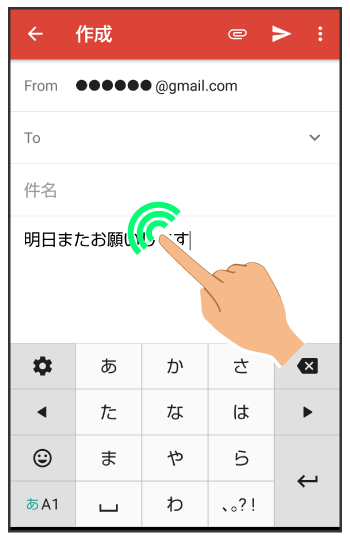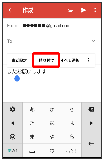 をドラッグすると、貼り付ける位置を調整できます。- アプリによっては、履歴から貼り付ける文字列を選択することもできます。