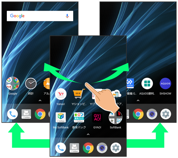 ホーム画面は複数のシートに分かれています。