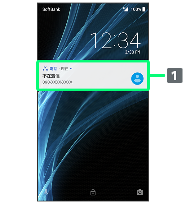 着信中に電話を受けられなかったときは、ロック画面に通知が表示されます。