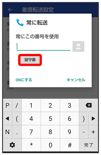 - /をタップしたときは、着信に出られない際に留守番電話センターに転送するかどうかを設定できます。