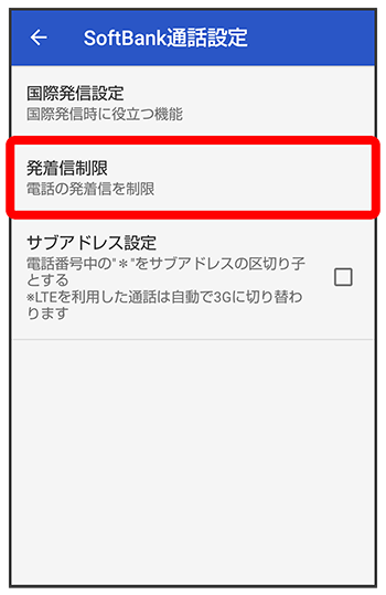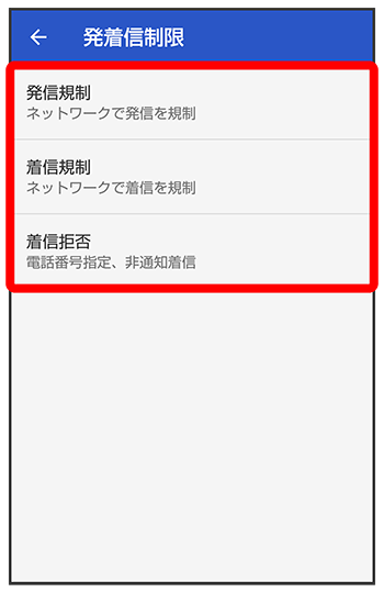 発着信制限画面で指定した電話番号からの着信を拒否する