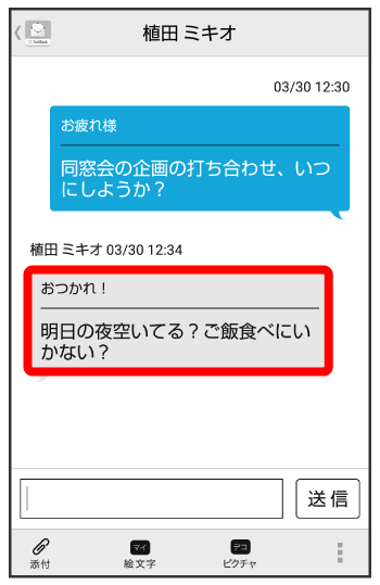 スレッド詳細画面で対象のメールをロングタッチS!メール/SMS詳細画面で迷惑メールを申告する