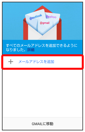 (Gmail)を起動すると、アカウント設定画面が表示され、設定操作を行うことができます。