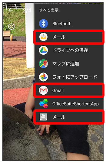 が表示されていないときは、画面をタップすると表示されます。- 複数のメールアカウントを登録している場合は、最後に使ったメールアカウントを使用して送信します。