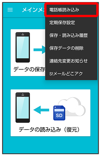 以前お使いの機種が3G携帯電話でS!電話帳バックアップサービスをご利用していたお客さまは、S!電話帳バックアップサービスのサーバーに保存されていたデータを本体の電話帳に読み込むことができます。
