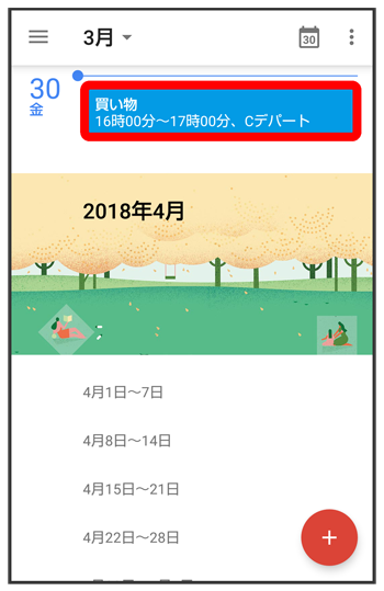 予定/リマインダ詳細画面で予定/リマインダを削除する
