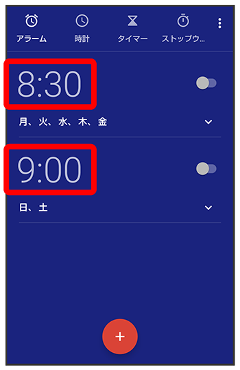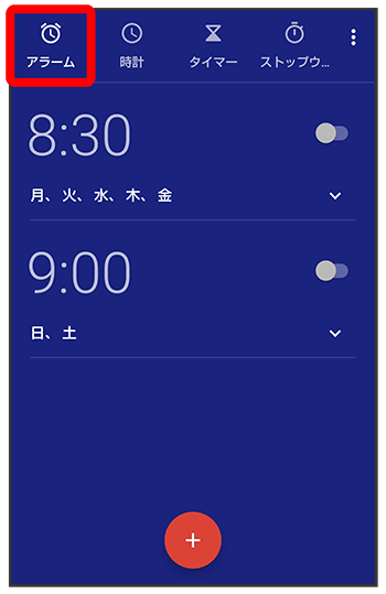 - 画面ロックを解除しているときは、アラーム通知の/をタップします。
