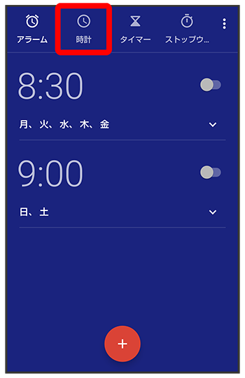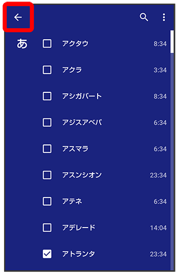 世界時計画面で- 夜間モードを解除するときは、画面をタップします。