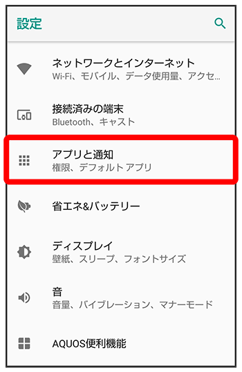 アプリと通知画面でアプリをタップ各項目を設定システムのアプリを表示する