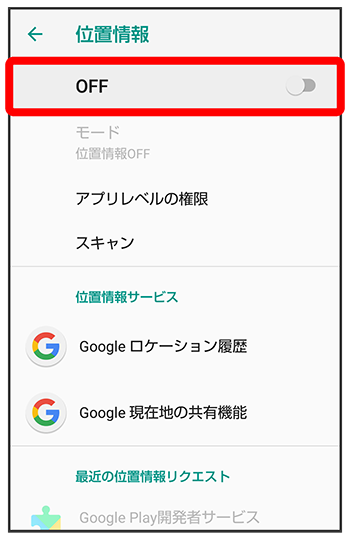 | スキャン | 位置情報の精度を向上させるためにWi-FiやBluetooth®のスキャンをするかどうかを設定します。 |