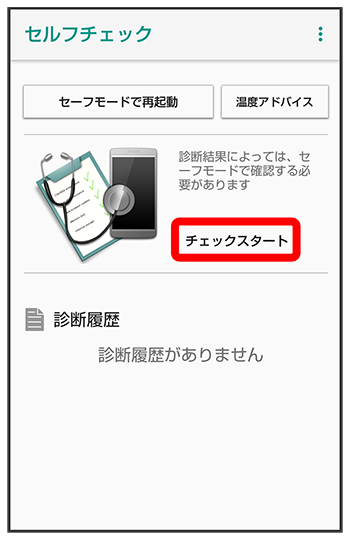 セルフチェック画面で- お買い上げ時に近い状態で再起動します。