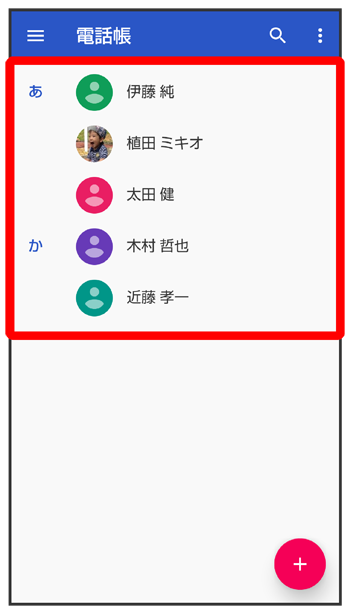 電話帳画面が表示されます。