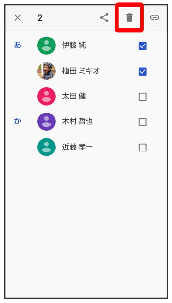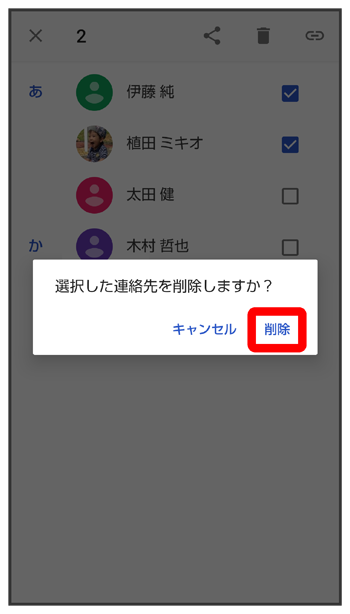 - 複数の連絡先を削除する場合は、続けてほかの対象の連絡先をタップします。
