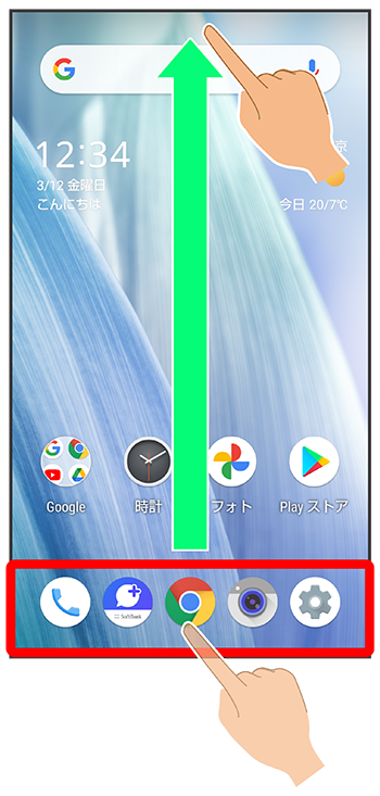 ホーム画面でお気に入りトレイを画面上部までドラッグ