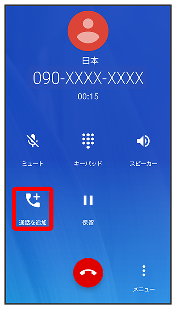 - 電話画面の上部を下にフリック通話を追加する連絡先をタップ通話を追加する電話番号をタップと操作しても、通話を追加できます。