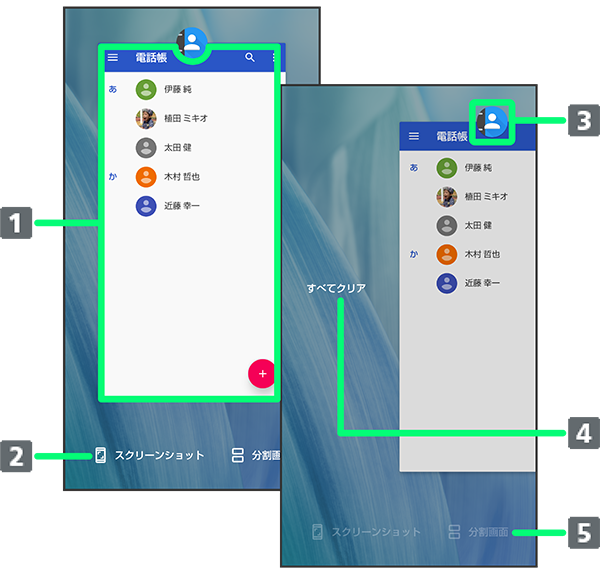 アプリの使用履歴画面でアプリの履歴のアイコンをタップ画面に従って操作- アプリ使用履歴画面で画面に従って操作しても、画面を分割できます。