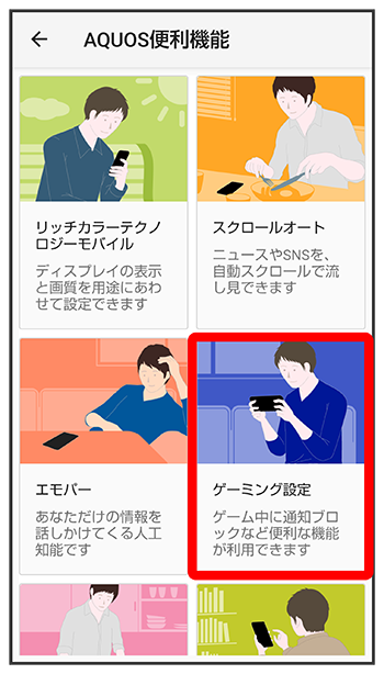 | ゲーム起動中の通知をブロック | ゲーム中に通知をブロックするかどうかなどを設定します。 |