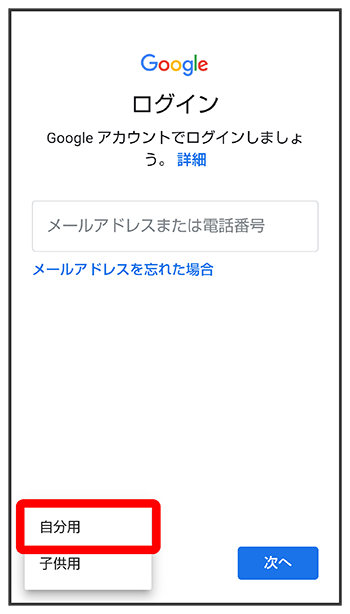 - 子供用のアカウントを作成する場合は、をタップし、画面に従って操作してください。