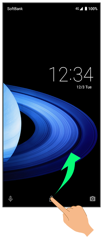 を上にフリックしたときは、このあとパターン/ロックNo.(PIN)/パスワードを入力してロックを解除する操作が必要です。