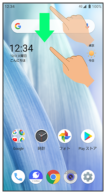 ステータスバーを下にドラッグ