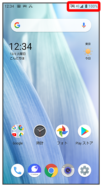- 本機はFDD-LTE(SoftBank 4G LTE)およびAXGP(SoftBank 4G)に対応しており、どちらに接続していてもこのアイコンが表示されます。また、SoftBank 4Gに優先的に接続します。