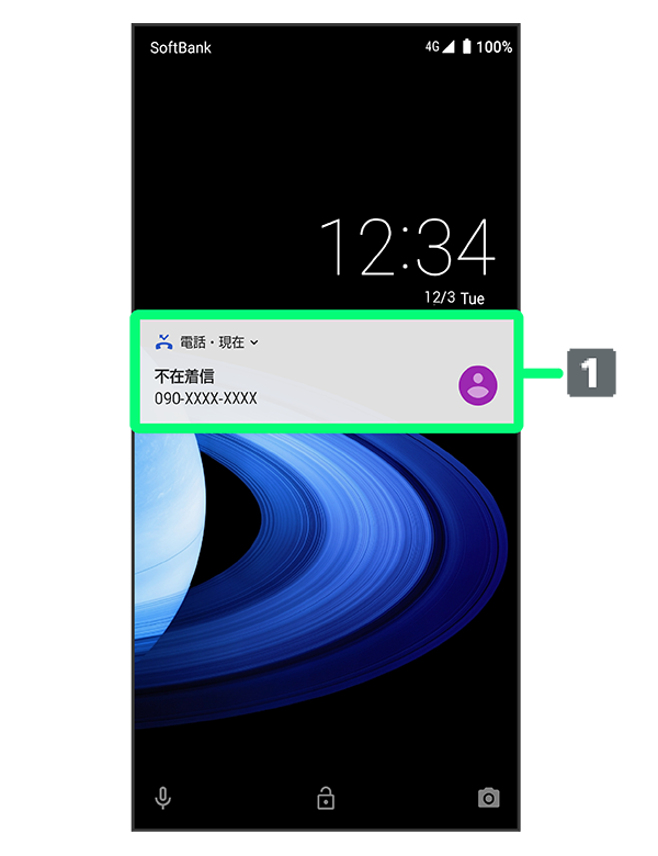 着信中に電話を受けられなかったときは、ロック画面に通知が表示されます。