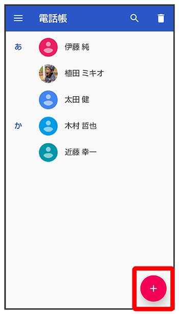 電話帳画面が表示されます。