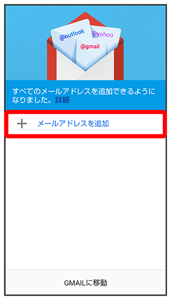(Gmail)を起動すると、アカウント設定画面が表示され、設定操作を行うことができます。