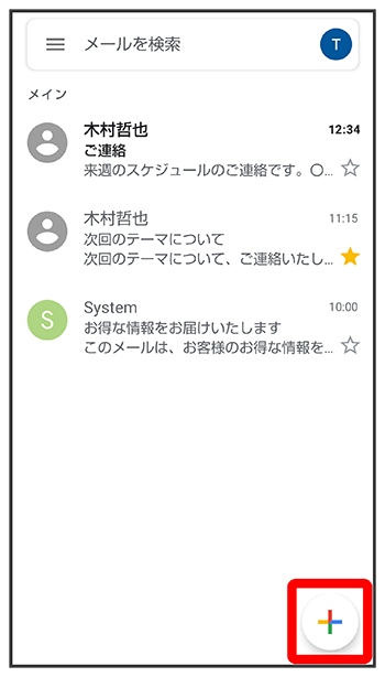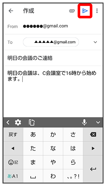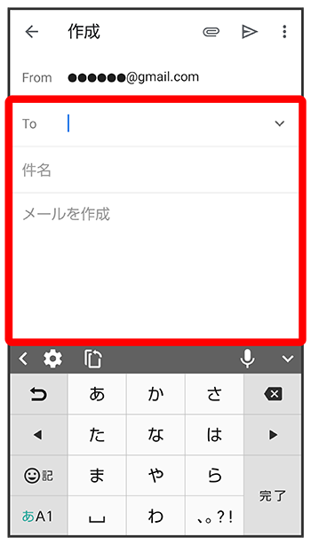 メール作成画面で- を選択すると、Google ドライブに保存したファイルを添付できます。