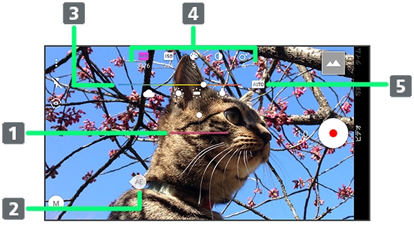ホワイトバランスやISO感度などの設定ができます。 - オートアイコン