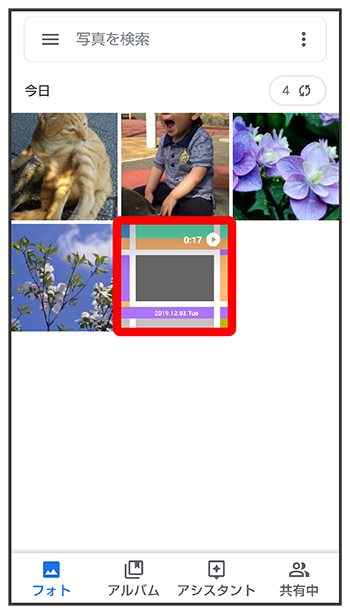 ショートムービー再生画面で画面をタップ//- 保存されていないパターンの動画を保存するときは、をタップします。